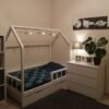 Rankų darbo lova, gaminama kaip individualus užsakymas. Lova ,,Namelis‘‘ bus pagaminta iš medžio bei dažyta ekologiškais, bekvapiais, draugiškais vaikams dažais. Lovą galite pasirinkti norimo dydžio, spalvos, taip pat galima pridėti papildomai lovytės apsaugą, pasirenkant kurioje pusėje ji bus.